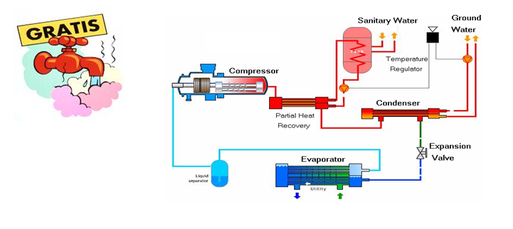 通常冷水機(jī)組的工質(zhì)的冷凝,大都單純地采用冷卻水或者空氣冷卻,不言而喻這部分巨大的熱量就白白地送入大氣而浪費了。并且為了帯走這些巨大的熱量而專門設(shè)置的冷卻水系統(tǒng)或風(fēng)冷系統(tǒng)還要消耗大量的電能,這是人們所不希望的,或者說不情愿的。