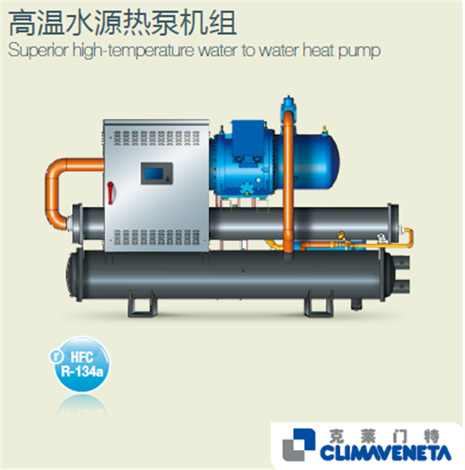 克萊門特PSRHH.H系列螺桿式高溫水源熱泵機(jī)組,采用環(huán)保冷媒HFC-134a,利用工業(yè)廢熱水、洗浴廢水、地?zé)嵛菜⒂吞锘刈⑺⒊鞘屑泄峄厮茸鳛闊嵩此芍苯哟嫒济喝細(xì)忮仩t制取75℃以上的高溫?zé)崴疂M足集中供暖或工業(yè)用熱水需求。相較于常溫水源熱泵,PSRHH.H系列螺桿式高溫水源熱泵機(jī)組適用于末端為暖氣片的采暖場(chǎng)合以及化工電鍍、冶金、食品煙草烘干、紡織印染等行業(yè)。